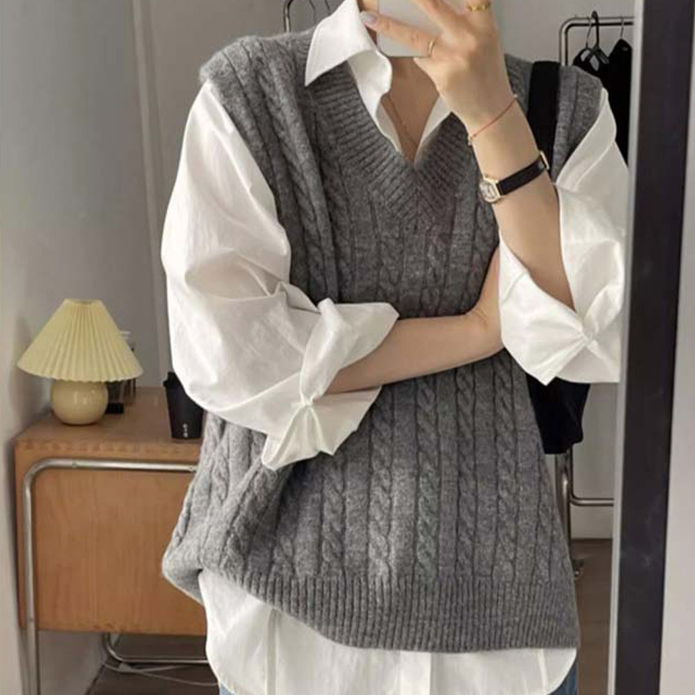 여리여리 애착 레이어드 꽈배기베스트